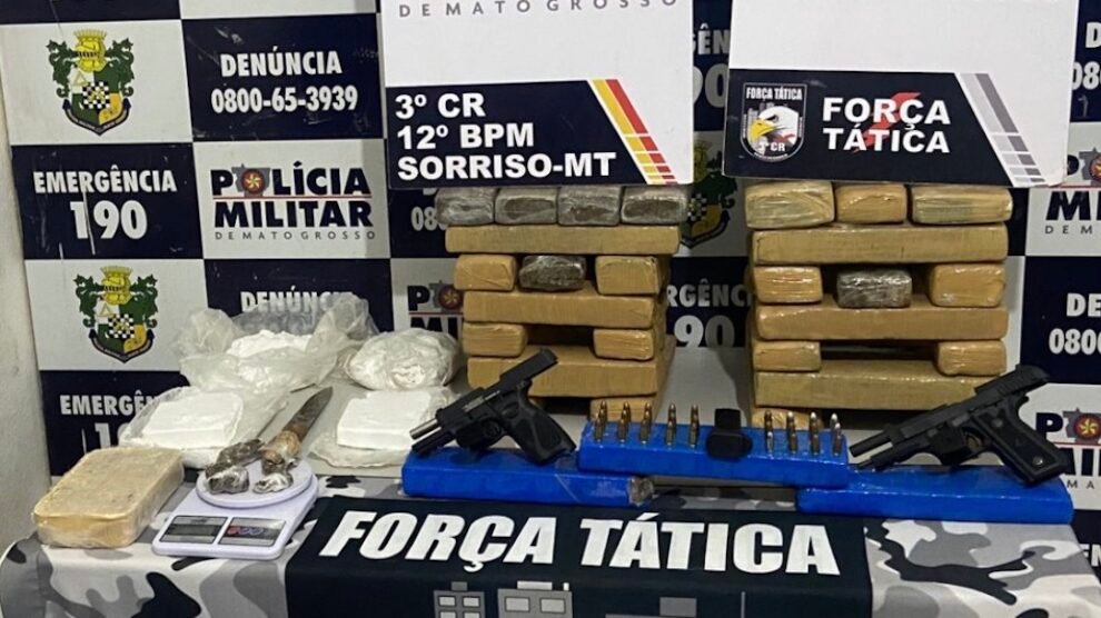 Policia apreende 40 tabletes de drogas e duas pistolas; um preso em Sorriso