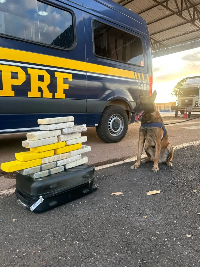 Cão policial encontra 17 tabletes de drogas em ônibus na BR-364 em MT