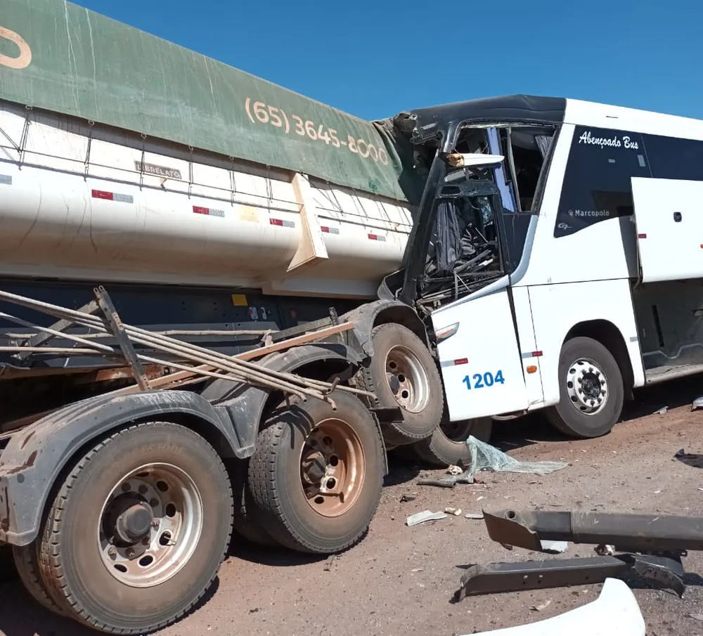 Motorista de ônibus morre e 4 passageiros ficam feridos em acidente em MT