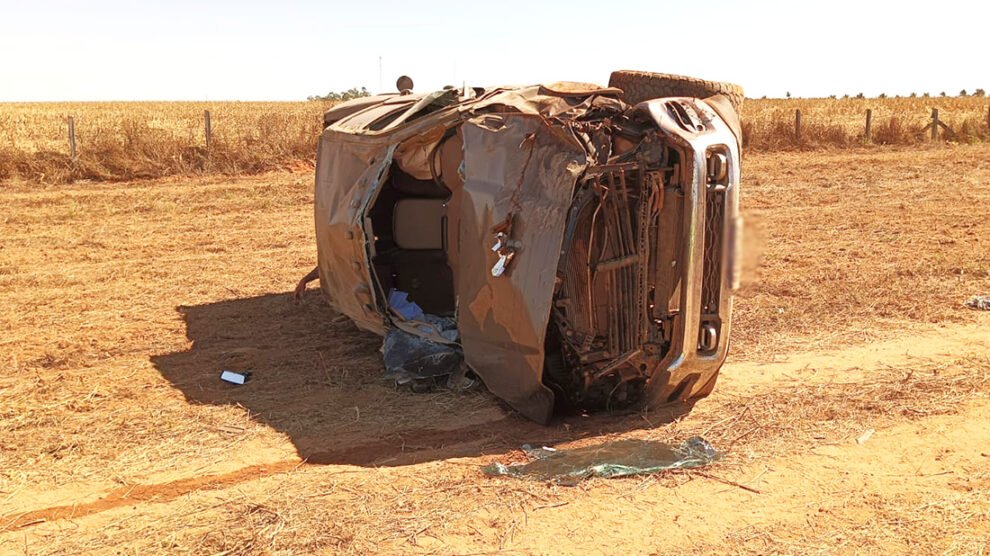 Caminhonete sai da BR-163, capota e fica destruída em Sinop
