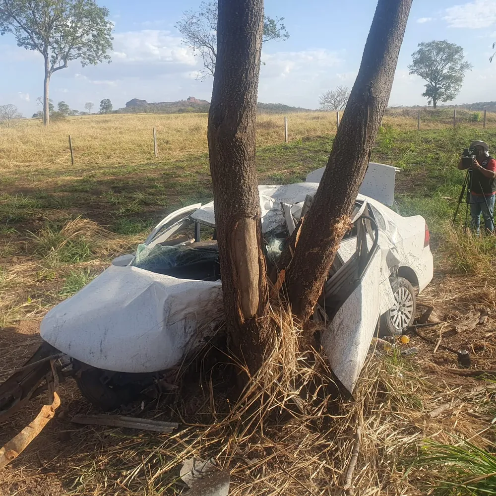 Pai, mãe e filha morrem após bater carro em árvore na BR-364 em MT