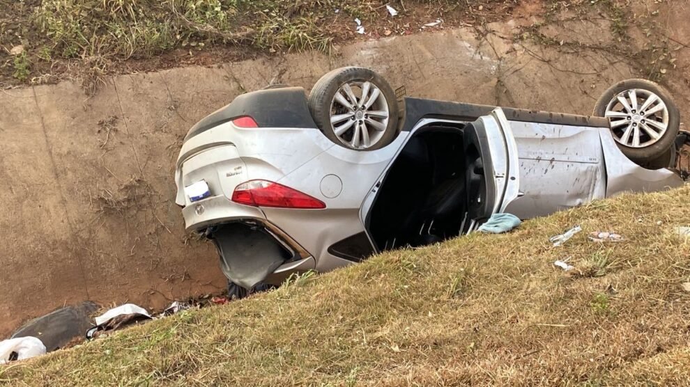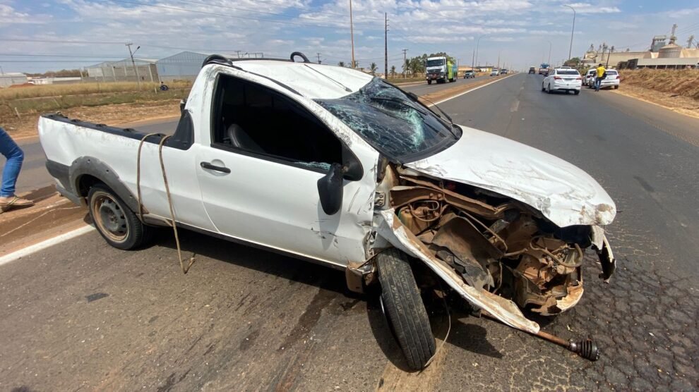 Carro capota na BR-163 em Sorriso, dois ficam feridos