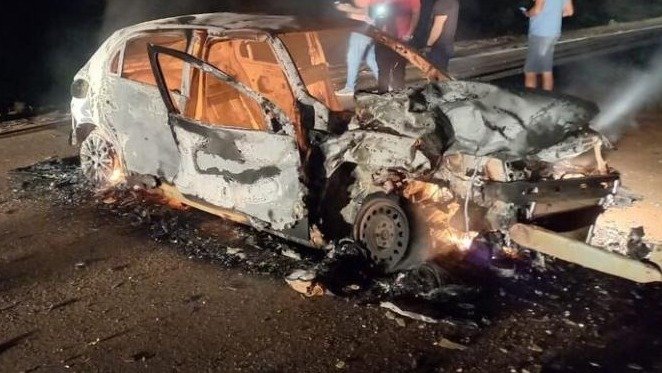 Carro pega fogo após colisão com carreta e caminhonete na BR-163 no Nortão