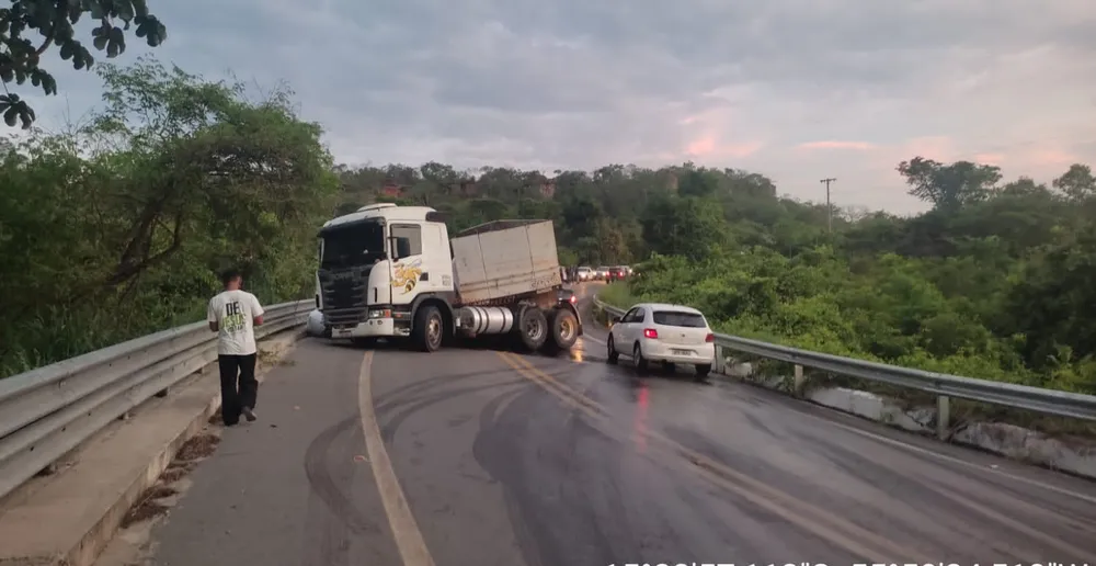 Caminhão tomba próximo ao Portão do Inferno e bloqueia estrada de Chapada dos Guimarães
