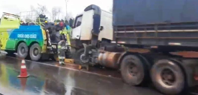 Colisão entre duas carretas assusta motoristas na BR-163
