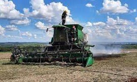 Bombeiros combatem fogo em colheitadeira em Sorriso