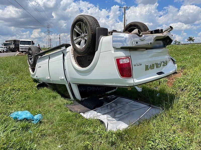 Caminhonete Ram capota após colisão com carreta na BR-163 em Nova Mutum