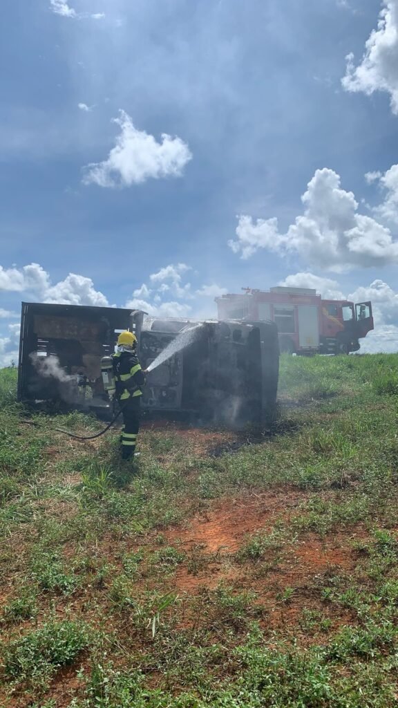 Caminhonete tomba e pega fogo na Br-163 próximo a Lucas do Rio Verde