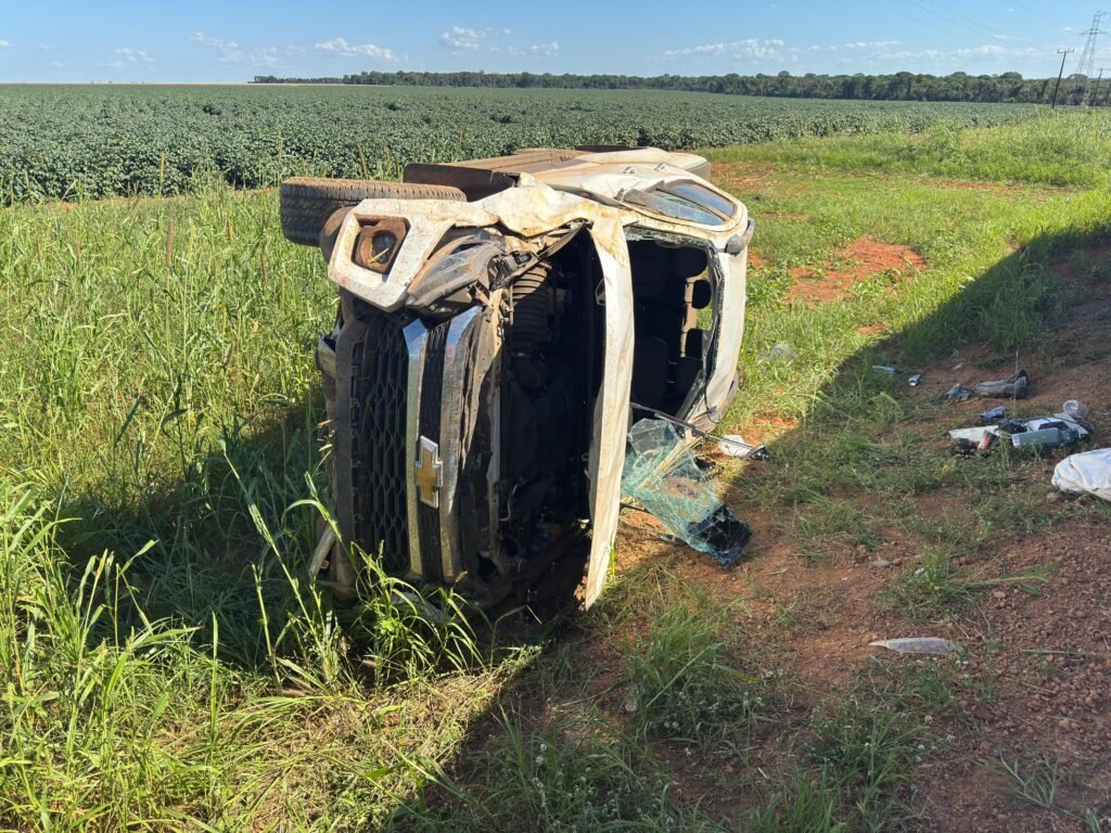 Motorista “desmaia”e capota caminhonete na MT-449, em Lucas do Rio Verde