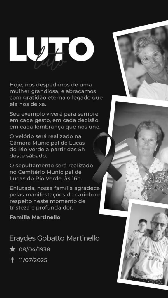 Morreu aos 87 anos nesta sexta-feira(11), Eraydes Gobatto Martinello, pioneira de Lucas do Rio Verde e matriarca da Família Martinello. Eraydes, morreu de complicações de um câncer. Ela descobriu a doença há cerca de cinco meses. Natural de São Lourenço do Oeste, Santa Catarina, Eraydes, chegou em Lucas do Rio Verde juntamente com seu esposo, […]