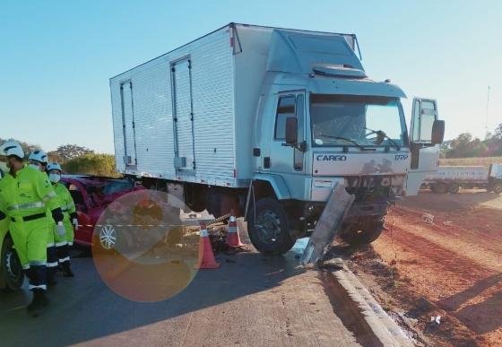 Colisão frontal entre carro e caminhão deixa um morto na Br-163, em Lucas do Rio Verde