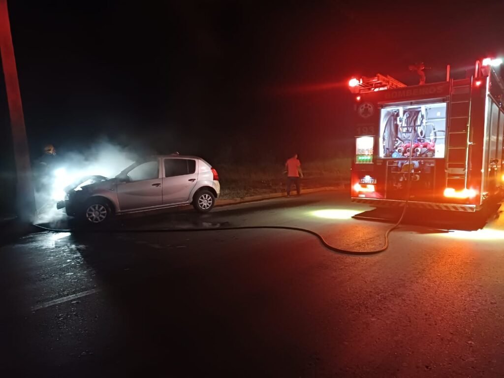 Veículo bate em poste e pega fogo em Lucas do Rio Verde
