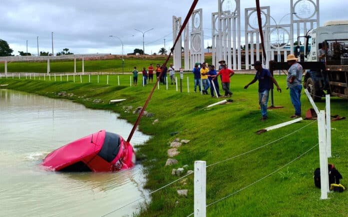 Motorista perde o controle ao tentar estacionar e carro cai em lago no Nortão