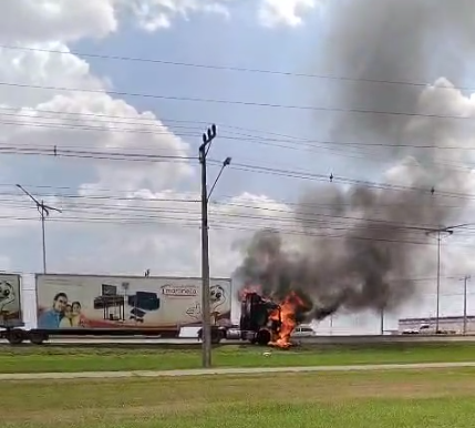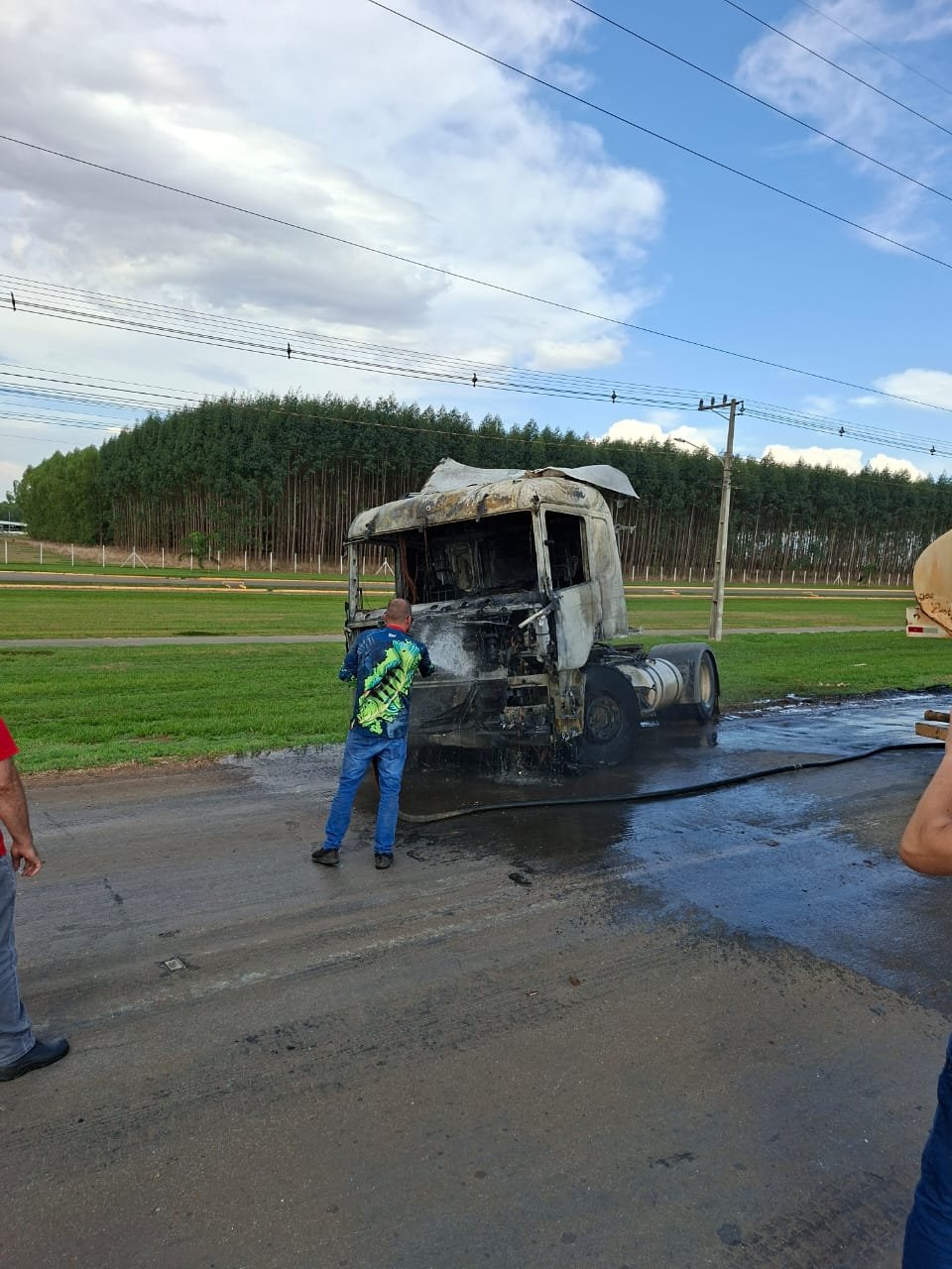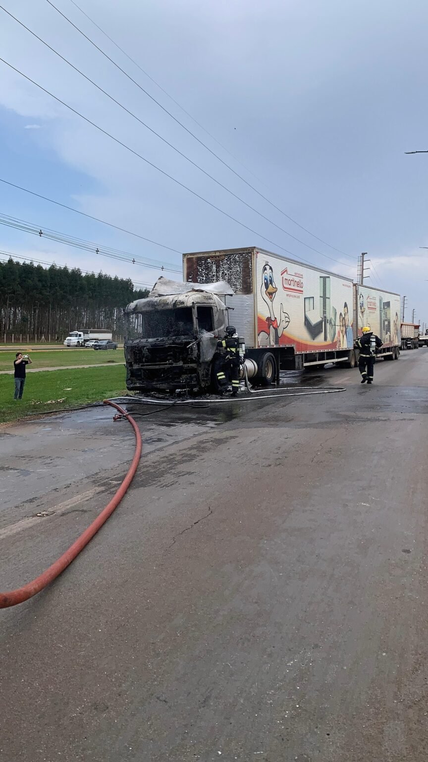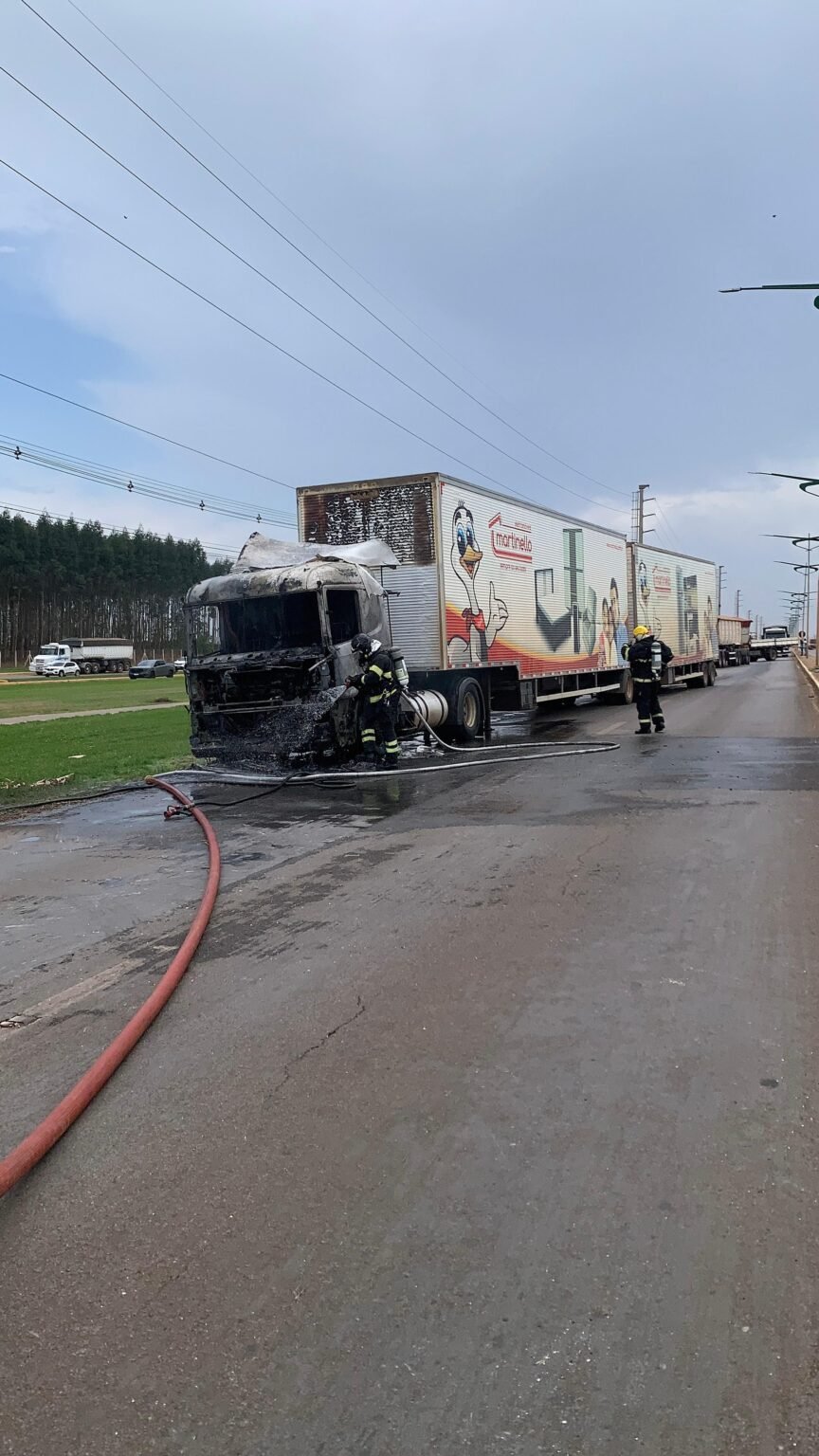 Os bombeiros foram acionados para conter as chamas que subiram rapidamente na cabine do veículo. O motorista estava dentro do veículo e conseguiu sair rapidamente sem ferimentos.
