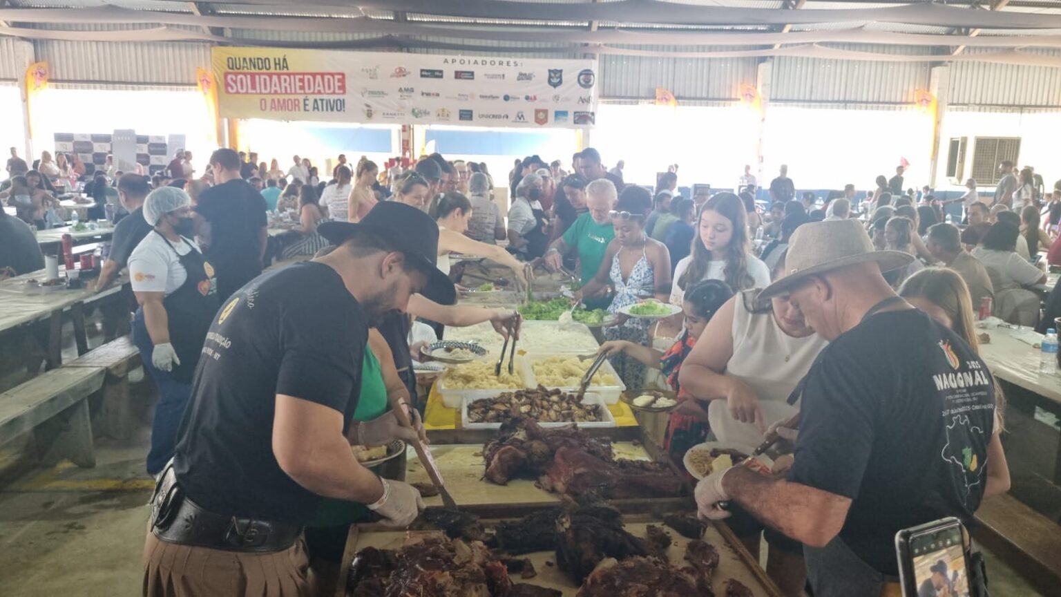 A variedade de carnes servida no evento chama atenção do grandioso público. Além do porco assado e porco frito no tacho, ainda foi servido frango, costelão bovino, arroz, mandioca, verduras, farofa e fruta.