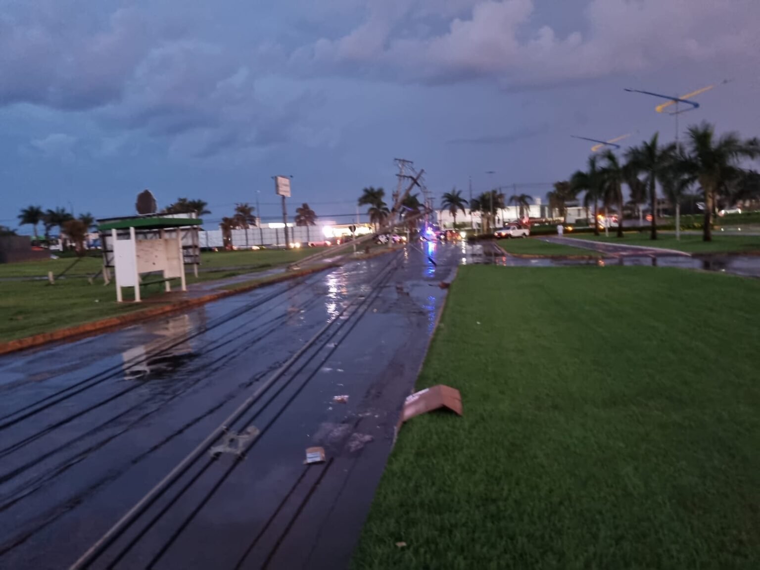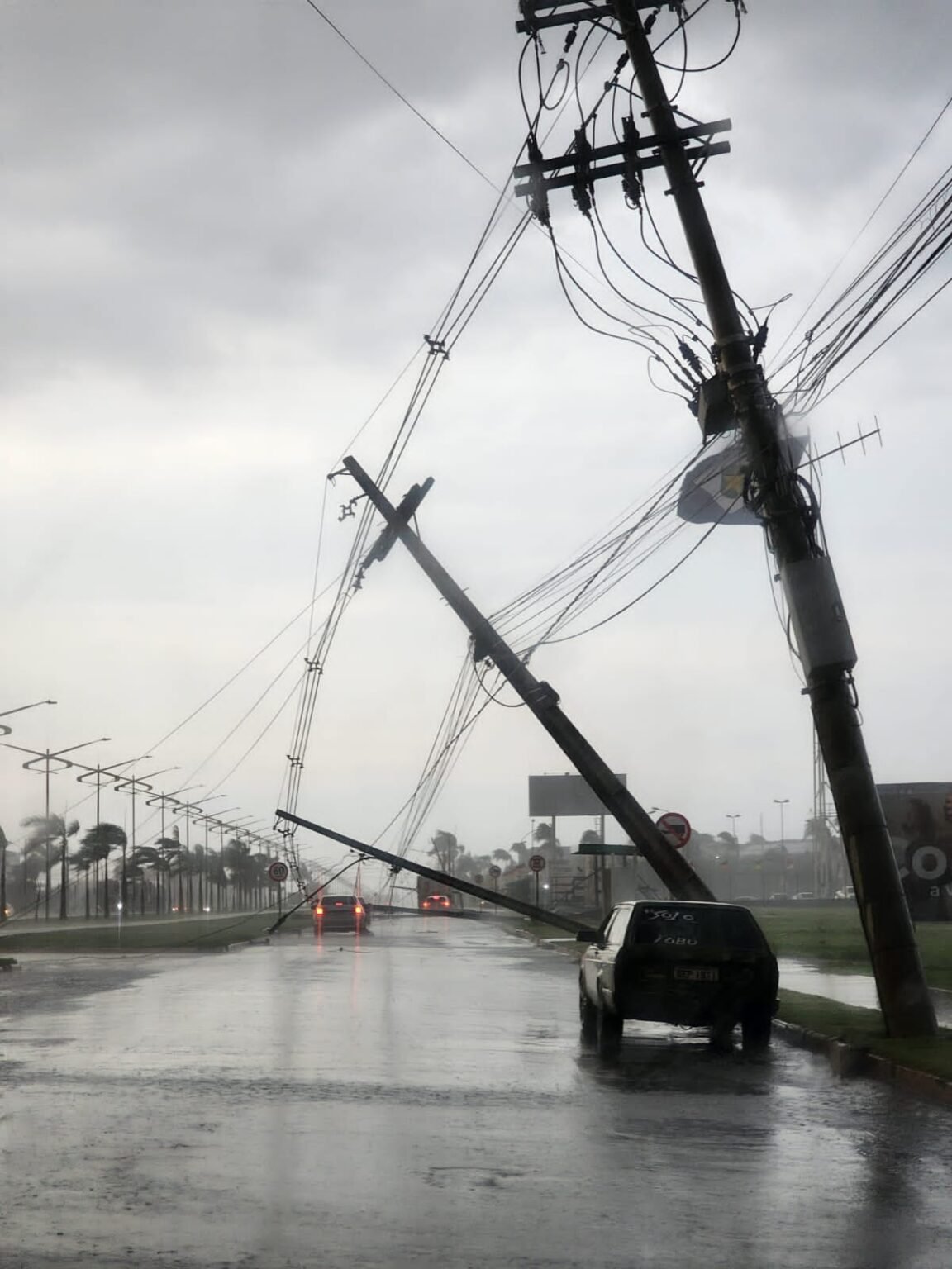 Uma forte chuva acompanhada com vendaval, causaram danos e prejuízos para os moradores de Lucas do Rio Verde na tarde deste domingo(8). Seis postes caíram na Avenida Universitária no Bairro Parque das Emas, deixando a cidade sem energia por várias horas.