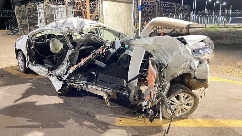 O carro ficou com a lateral esquerda, traseira e teto muito danificados. De acordo com a assessoria da concessionária, informações iniciais apontam para uma colisão lateral entre o carro, a caminhonete e a carreta, que transportava etanol. Não houve derramamento de combustível.
