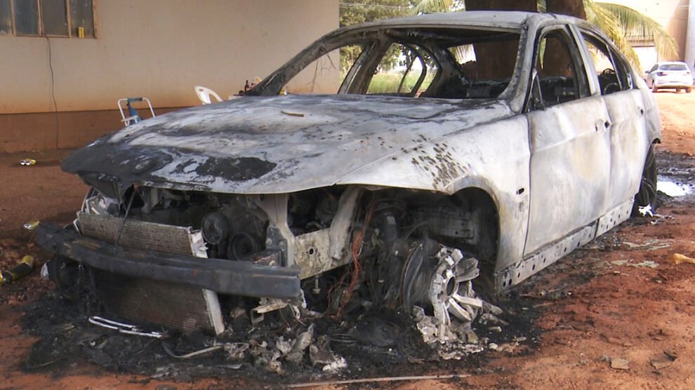 O Corpo de Bombeiros apagou incêndio em uma BMW, em uma associação de um loteamento, na tarde desta quinta feira(8). De acordo com o capitão Daniel Alves Moura, o fogo iniciou durante a tentativa de algumas pessoas, que estavam no local, de atear fogo em uma cachopa de abelhas. “A informação que chegou, é que usaram uma tocha. Eles pegaram um cabo de vassoura, enrolaram uma camiseta na ponta e colocaram fogo. Com o ataque, o pessoal saiu correndo e provavelmente a tocha caiu próxima ao carro e aconteceu a propagação do fogo”, disse.