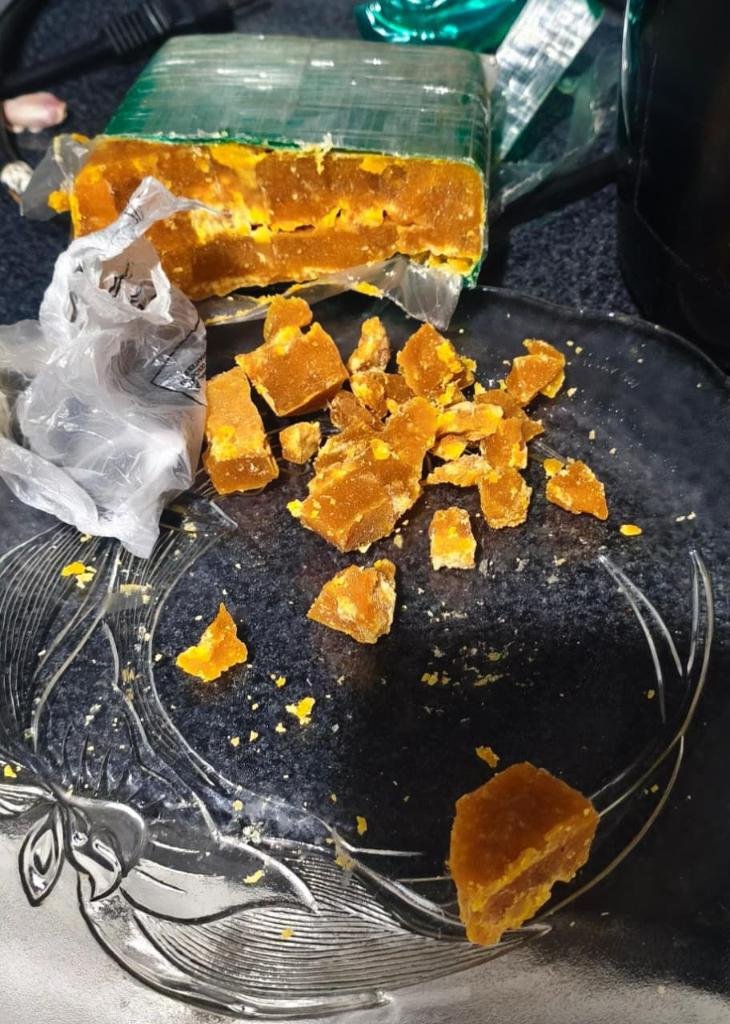 Em buscas na residência, os policiais apreenderam um revólver, munições, meia barra de substância análoga à cocaína e outras porções do mesmo entorpecente.