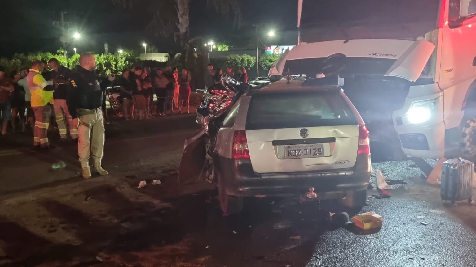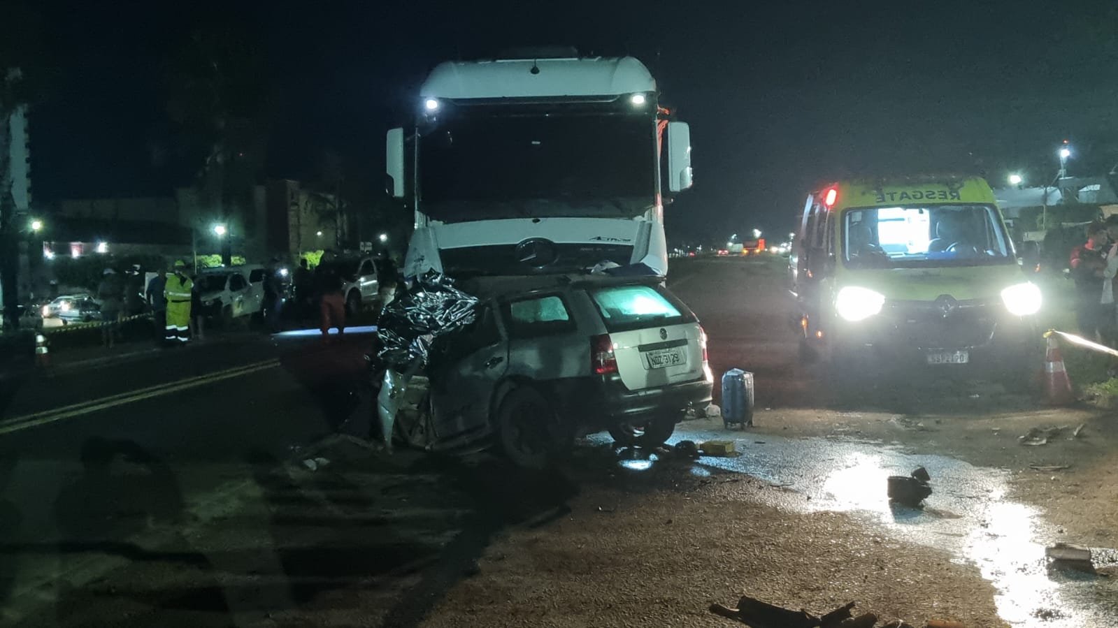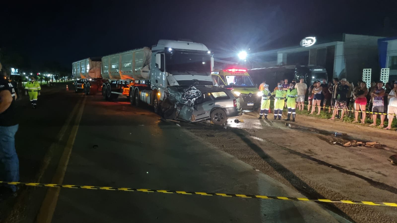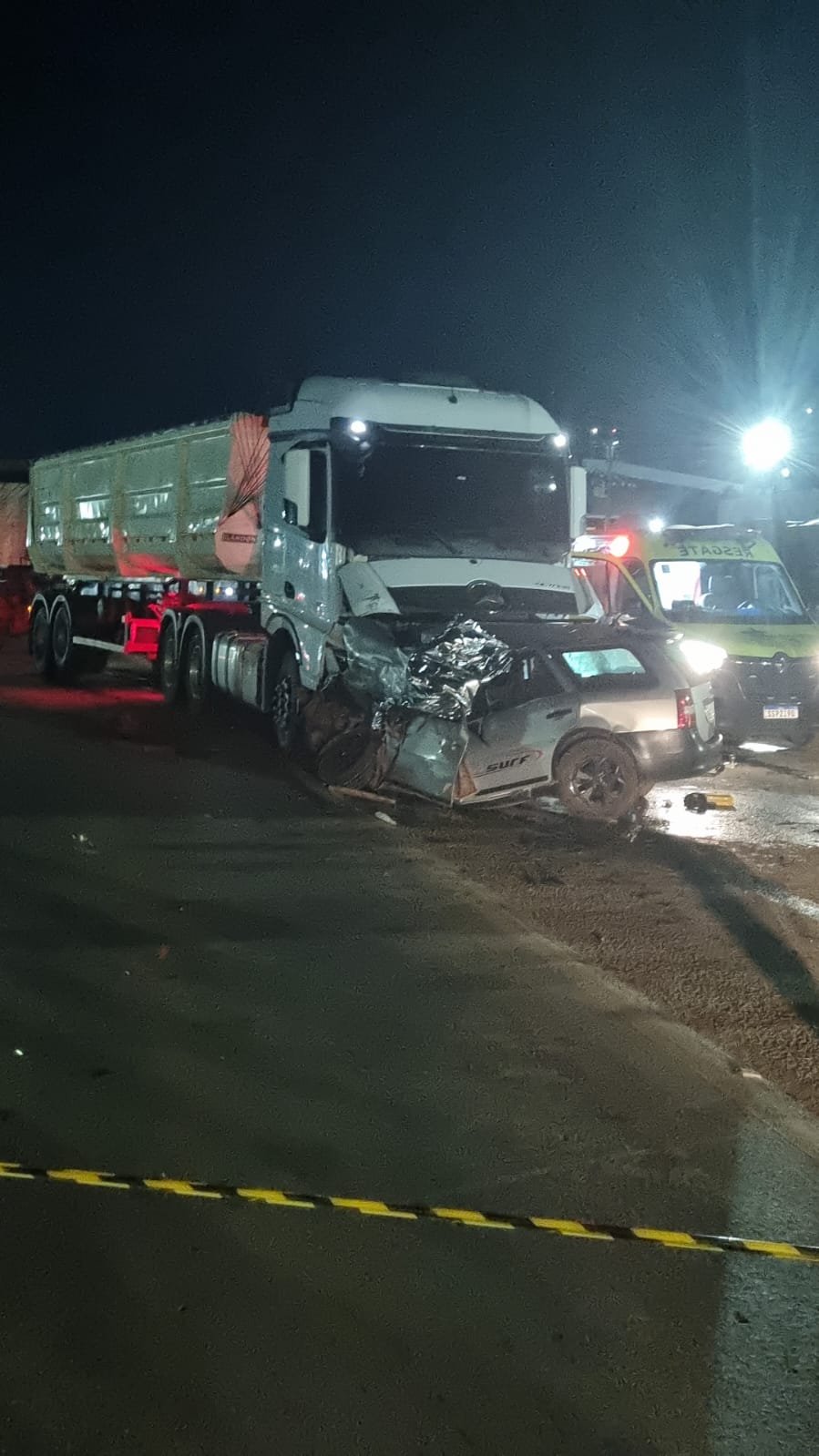 Duas pessoas identificadas, Agostinho Pires da Silva Junior, de 42 anos e Raimundo Denivaldo Braga, 55, morreram na noite deste domingo (9), em um grave acidente ocorrido no perímetro urbano da Br-163, em Lucas do Rio Verde. O acidente envolveu uma Carreta FH Volvo bitrem e um automóvel VW Paraty.