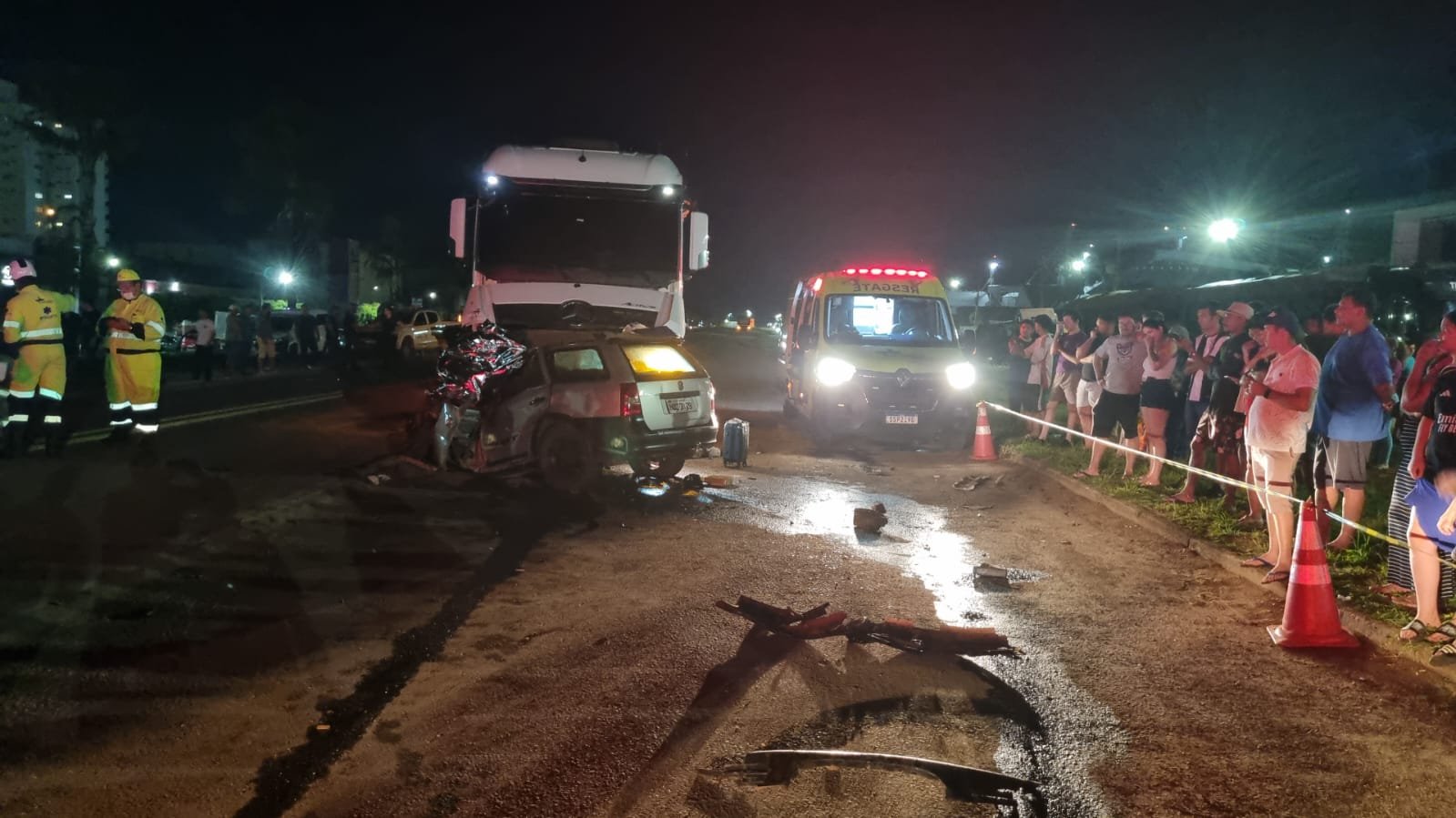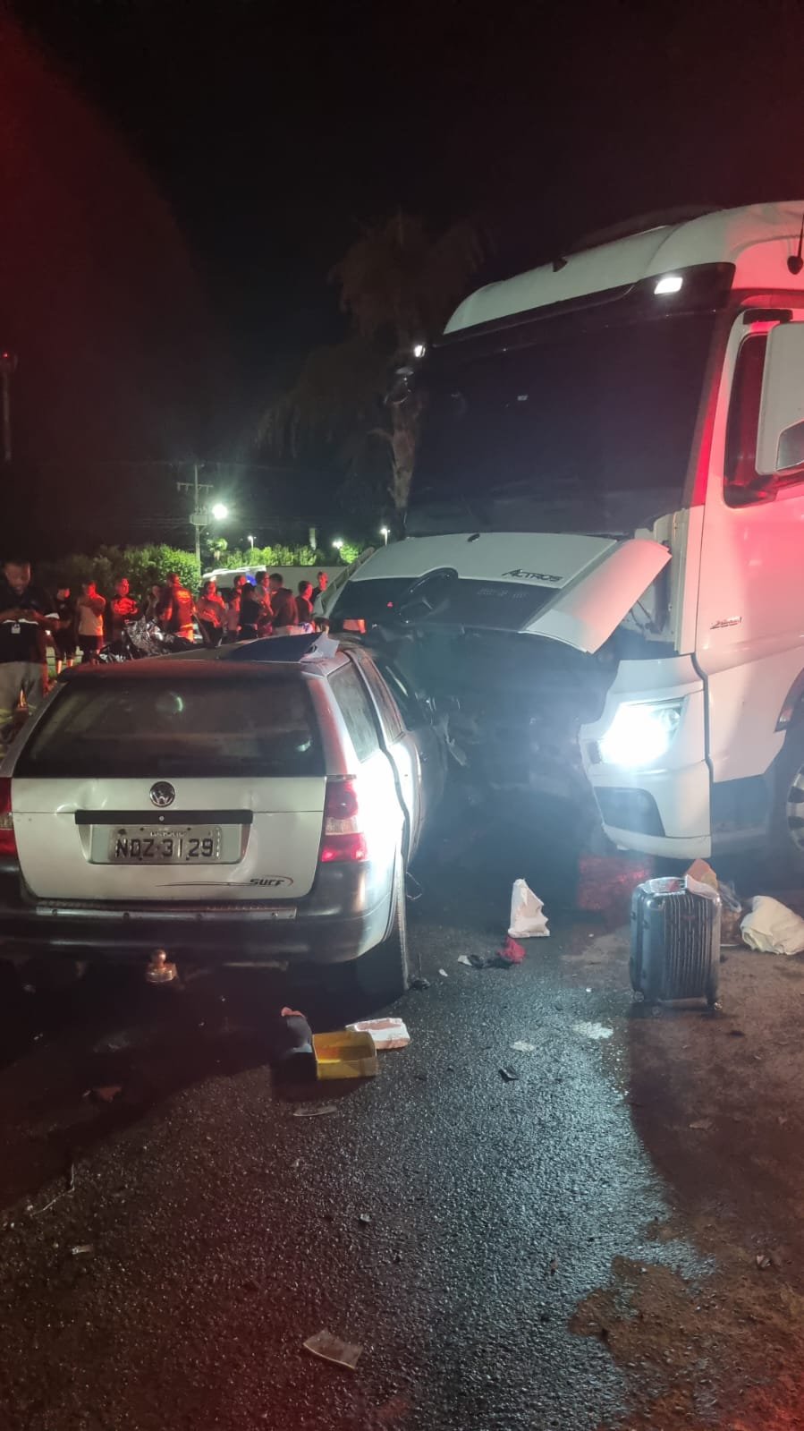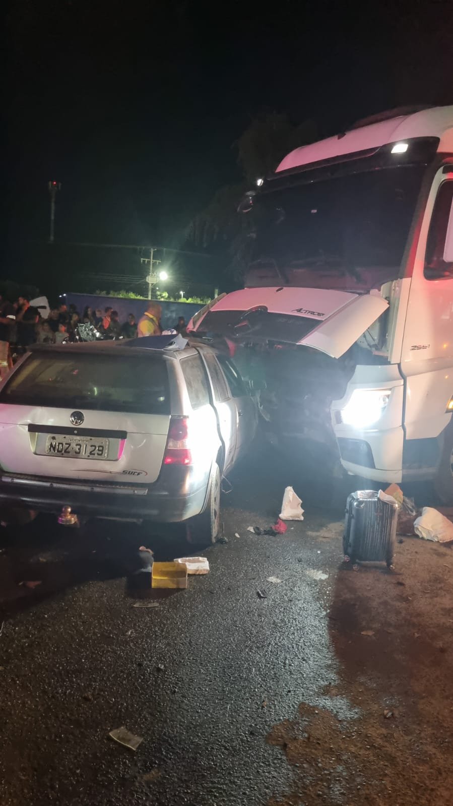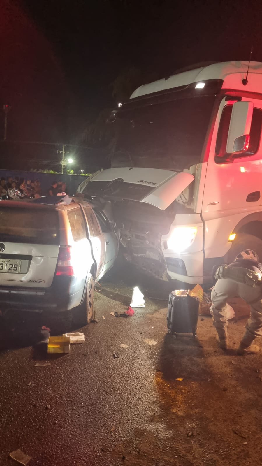 Duas pessoas identificadas, Agostinho Pires da Silva Junior, de 42 anos e Raimundo Denivaldo Braga, 55, morreram na noite deste domingo (9), em um grave acidente ocorrido no perímetro urbano da Br-163, em Lucas do Rio Verde. O acidente envolveu uma Carreta FH Volvo bitrem e um automóvel VW Paraty.