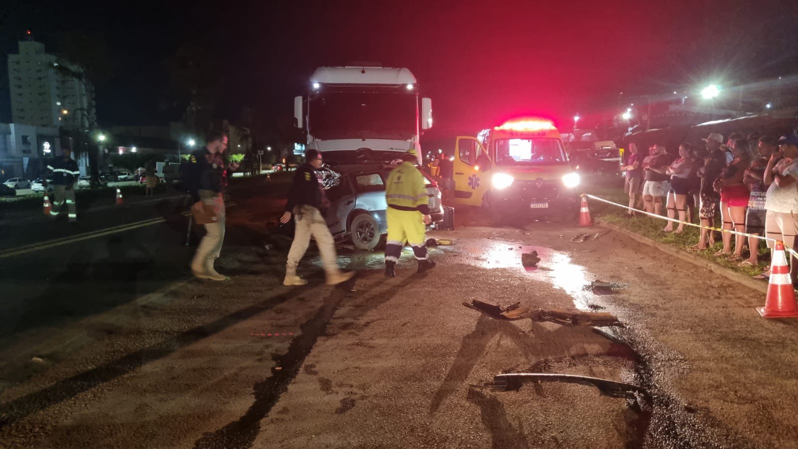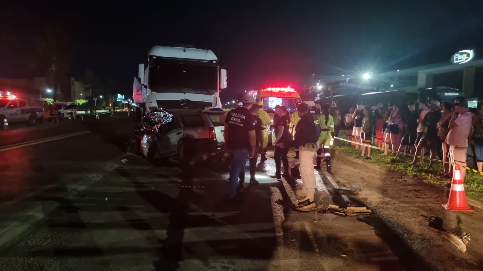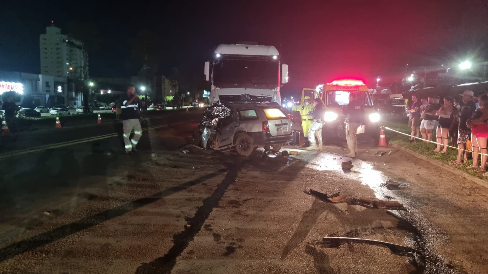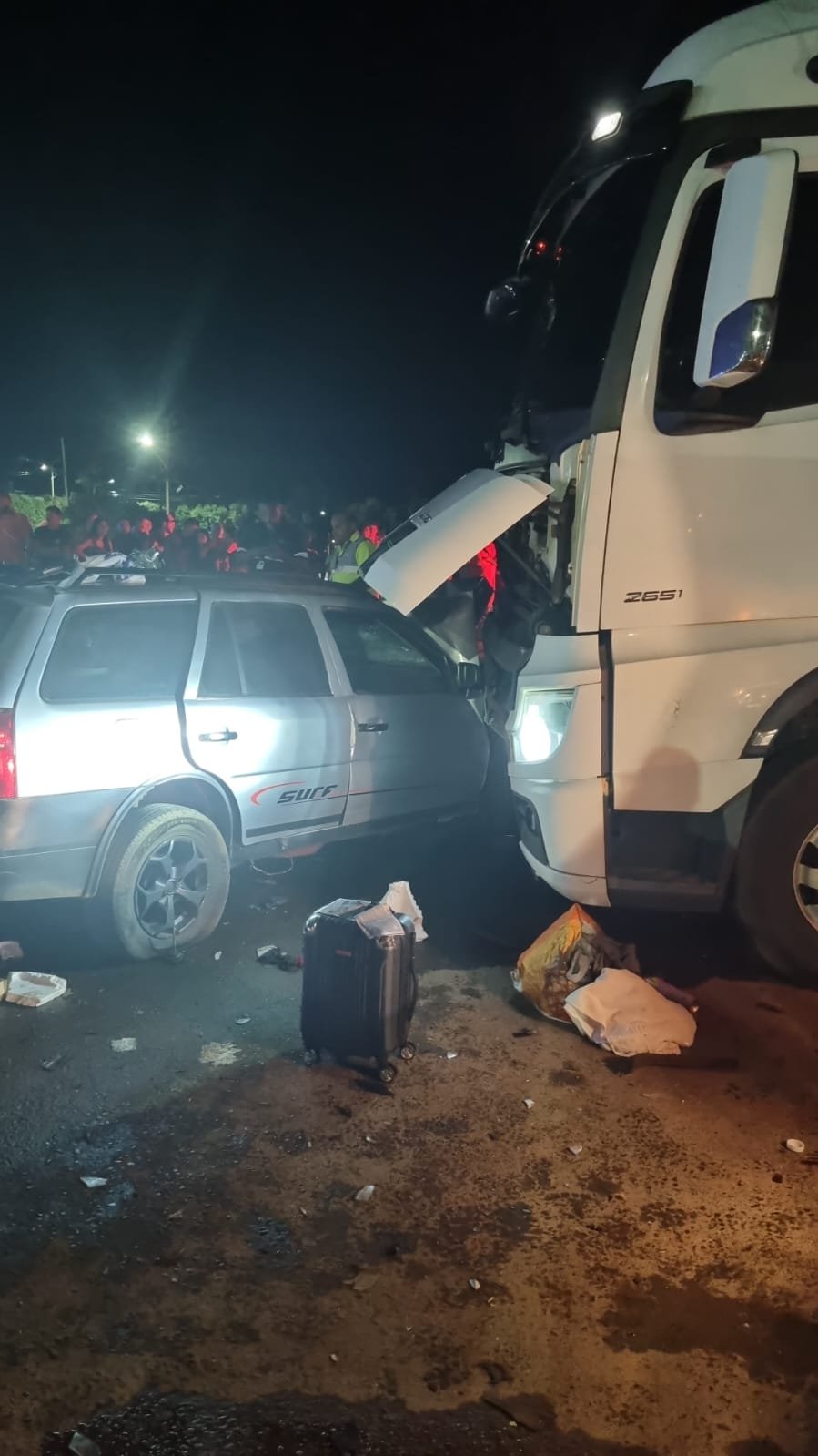 Duas pessoas identificadas, Agostinho Pires da Silva Junior, de 42 anos e Raimundo Denivaldo Braga, 55, morreram na noite deste domingo (9), em um grave acidente ocorrido no perímetro urbano da Br-163, em Lucas do Rio Verde. O acidente envolveu uma Carreta FH Volvo bitrem e um automóvel VW Paraty.
