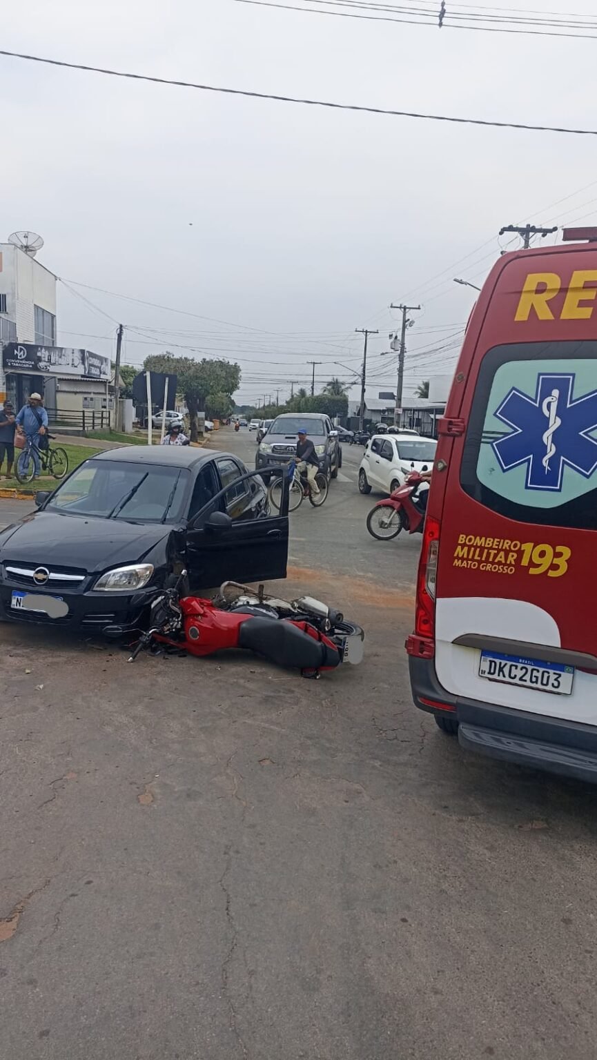 A viatura de socorro da 13º Companhia Independente dos Bombeiros de Lucas do Rio Verde, foi acionado na tarde dessa quinta, para atender uma colisão envolvendo uma motocicleta e um carro na avenida Ângelo Ball’alba esquina com a rua Itanhangá.