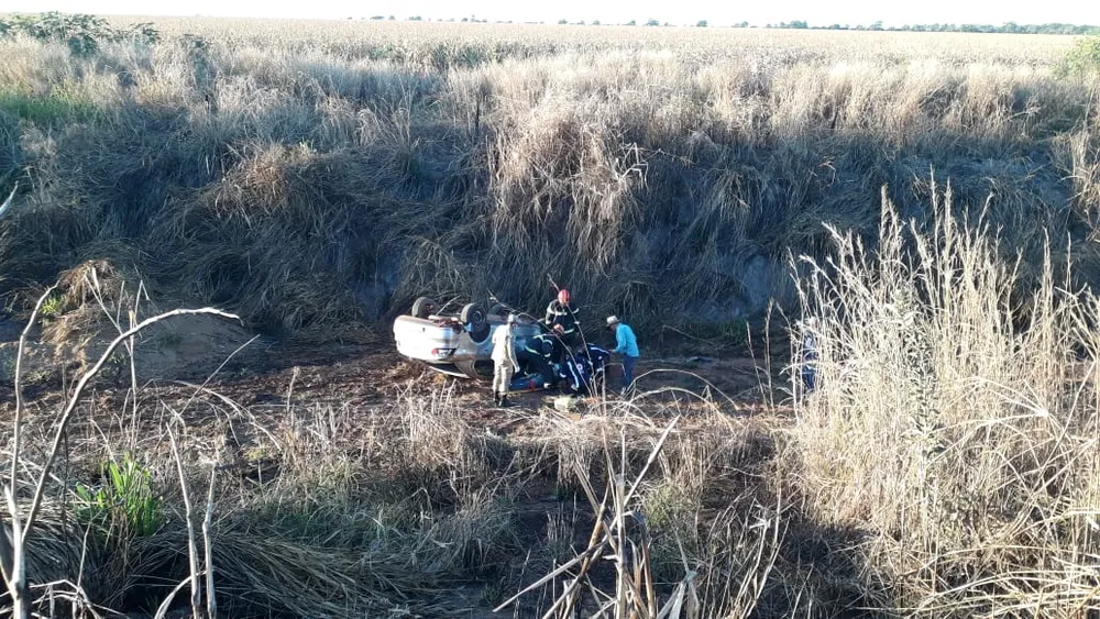 A vítima estava sozinha no automóvel e foi encontrada pela equipe de resgate deitada no chão, queixando-se de dor no tórax e na cabeça.