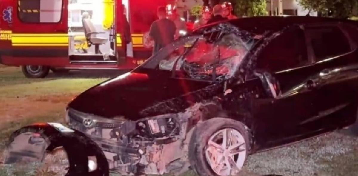 Ao chegar ao local, foi constatado que a condutora trafegava sentido Centro quando, na rotatória com a Avenida das Palmeiras, acabou perdendo o controle do veículo, batendo no meio-fio, colidindo com uma árvore e capotando várias vezes.