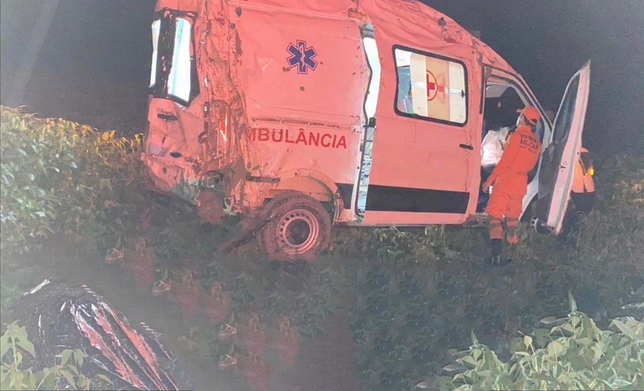 A ambulância realizava o transporte do paciente quando, por circunstâncias ainda a serem esclarecidas, o condutor perdeu o controle da direção, resultando no capotamento às margens da rodovia. Com o impacto, o veículo ficou bastante danificado.