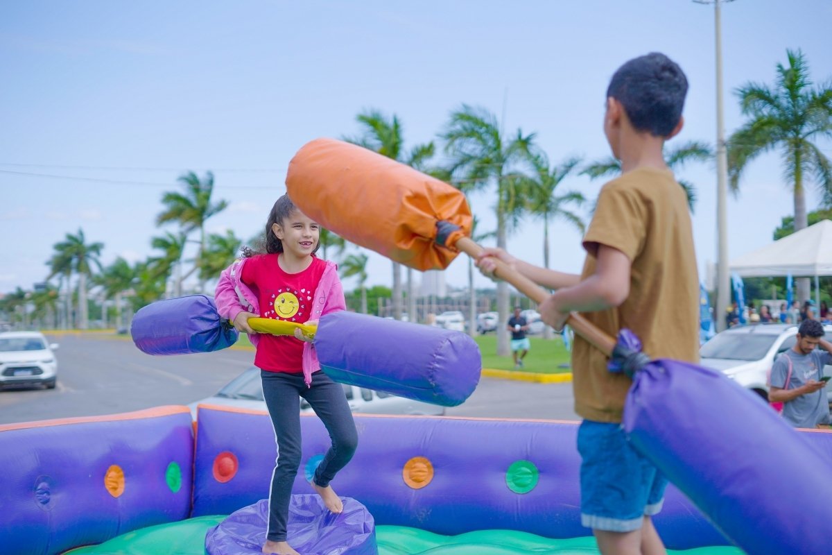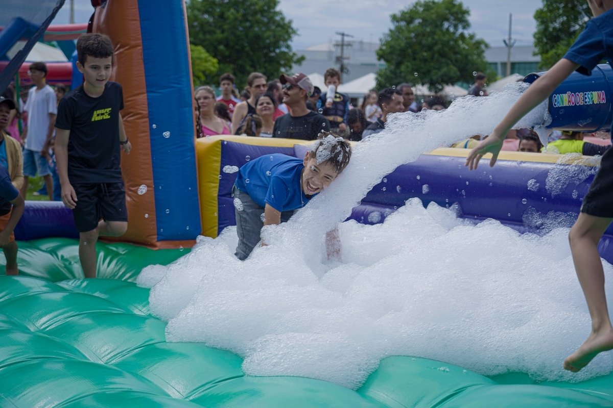 Lavínia Brito levou os filhos para aproveitar a programação e destacou o cuidado da organização com cada detalhe. “Eu estou achando tudo muito bom, porque muitas crianças não conseguem participar de outras festas infantis, e aqui elas têm a oportunidade de participar de uma festa deste tamanho. É legal que tem pintura no rosto, brinquedos e diversas opções de lanche. Se a criança não come bolo ou não toma guaraná, tem mamão, melancia e banana. Foi uma festa bem pensada para todas as crianças.”