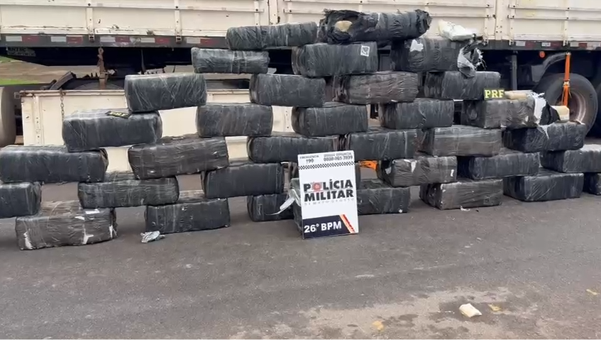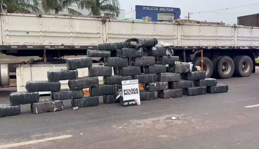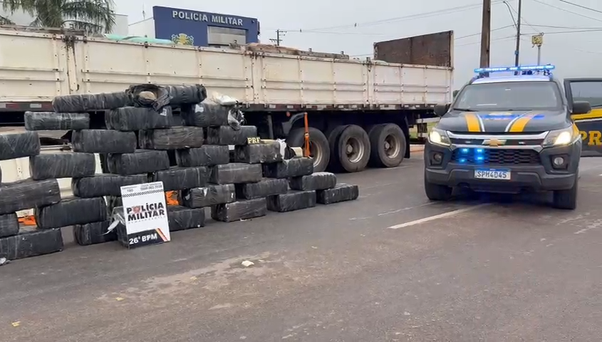 PRF e PM fazem apreensão de 806,40 kg de drogas em carroceria de caminhão em Nova Mutum