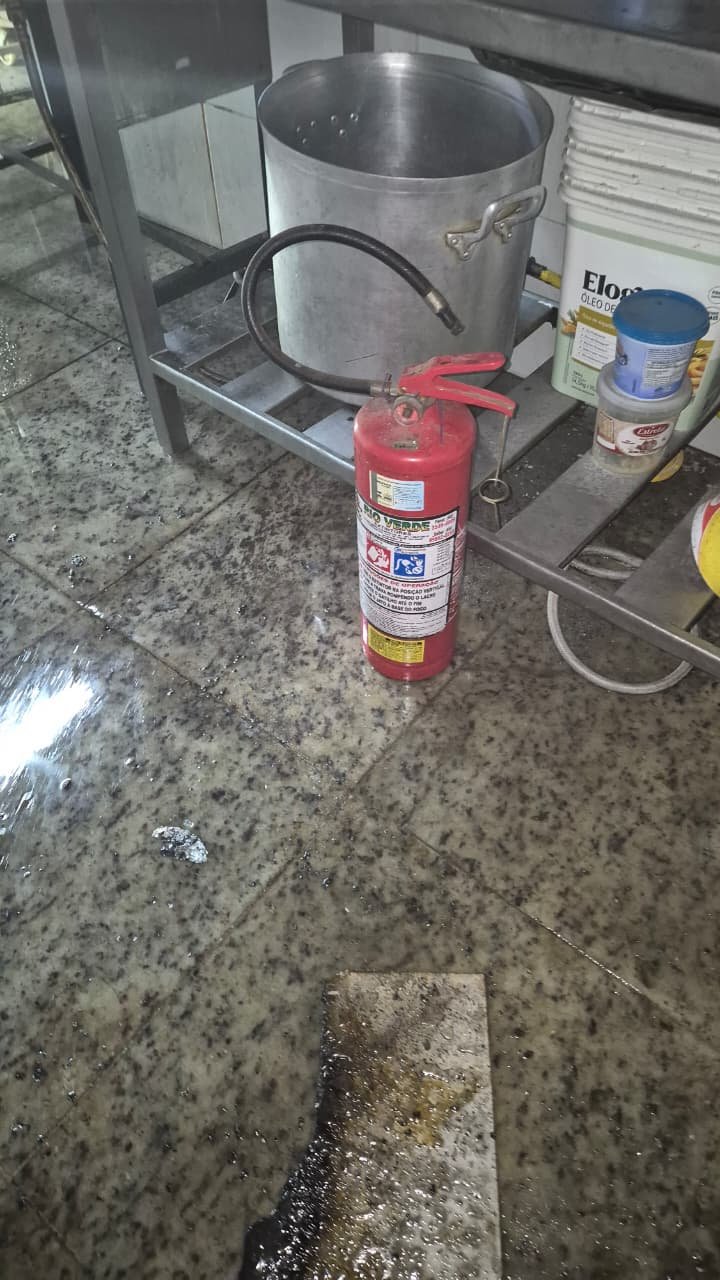 Ao chegar no local, a equipe localizou o foco em uma fritadeira elétrica industrial e, após garantir a segurança da equipe, realizou o combate com extintor pó químico seco (PQS) do próprio estabelecimento. Em seguida foi isolado o material para evitar propagação e devido a presença de muita fumaça foi realizada uma ventilação por pressão negativa com o auxílio de uma linha de mangueira que havia sido montada pelos funcionários do supermercado.