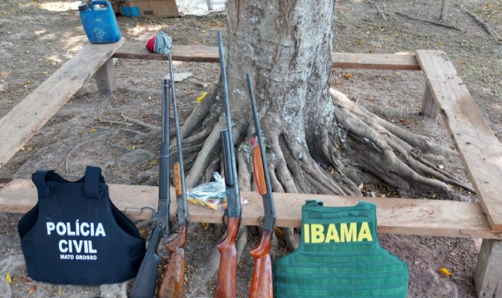 A Polícia Civil informou, há pouco que prendeu, hoje, um homem, 44 anos, suspeito de matar onças-pintadas na região de Paranaíta. A prisão ocorreu durante ação deflagrada em parceria com o Ibama após denúncias de abate de animais silvestres na região para oferecer aos cachorros da propriedade. Foram apreendidas quatro espingardas, munições, carne e gordura dos animais.